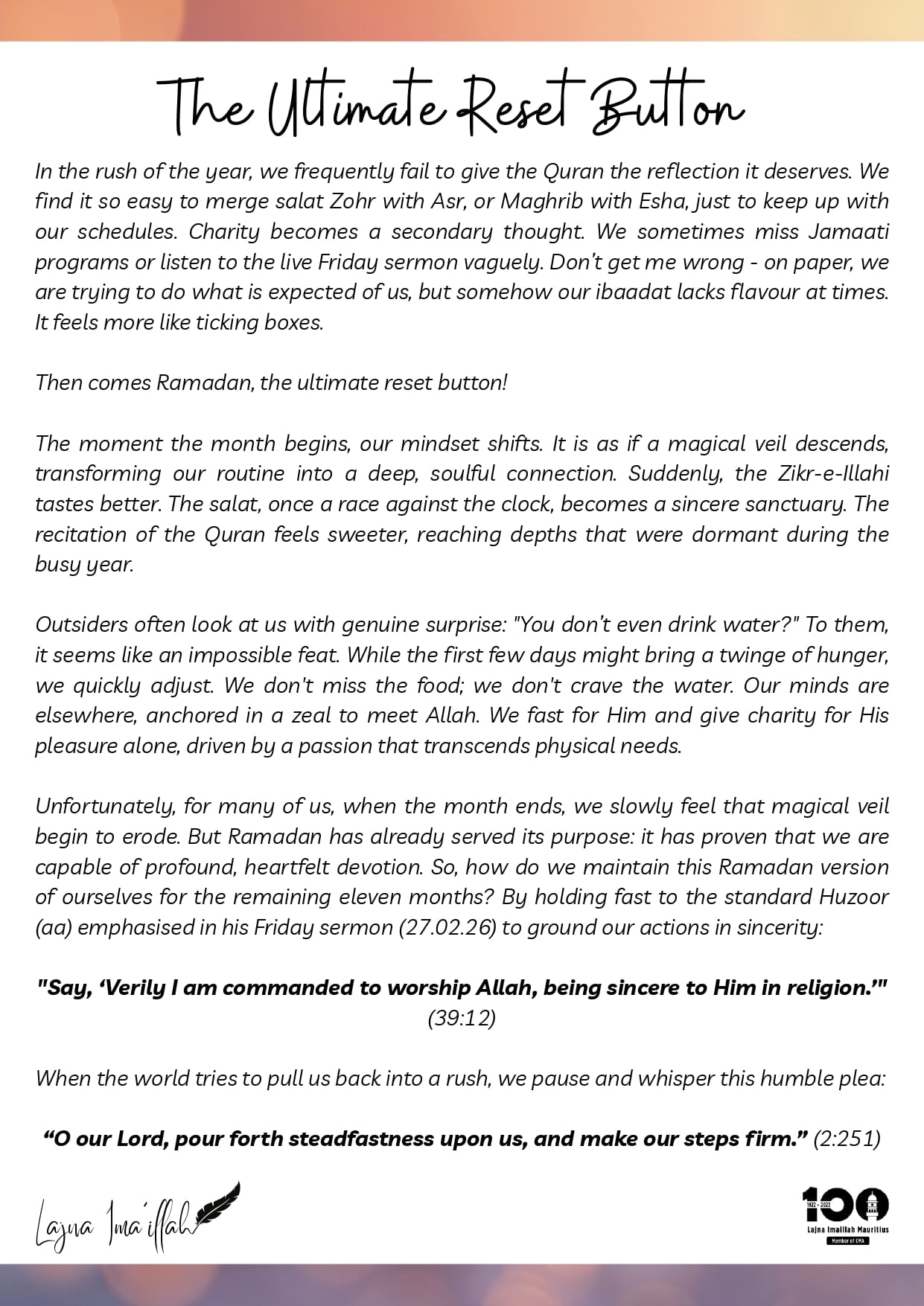 Centenaire de la Lajna Ima’illah